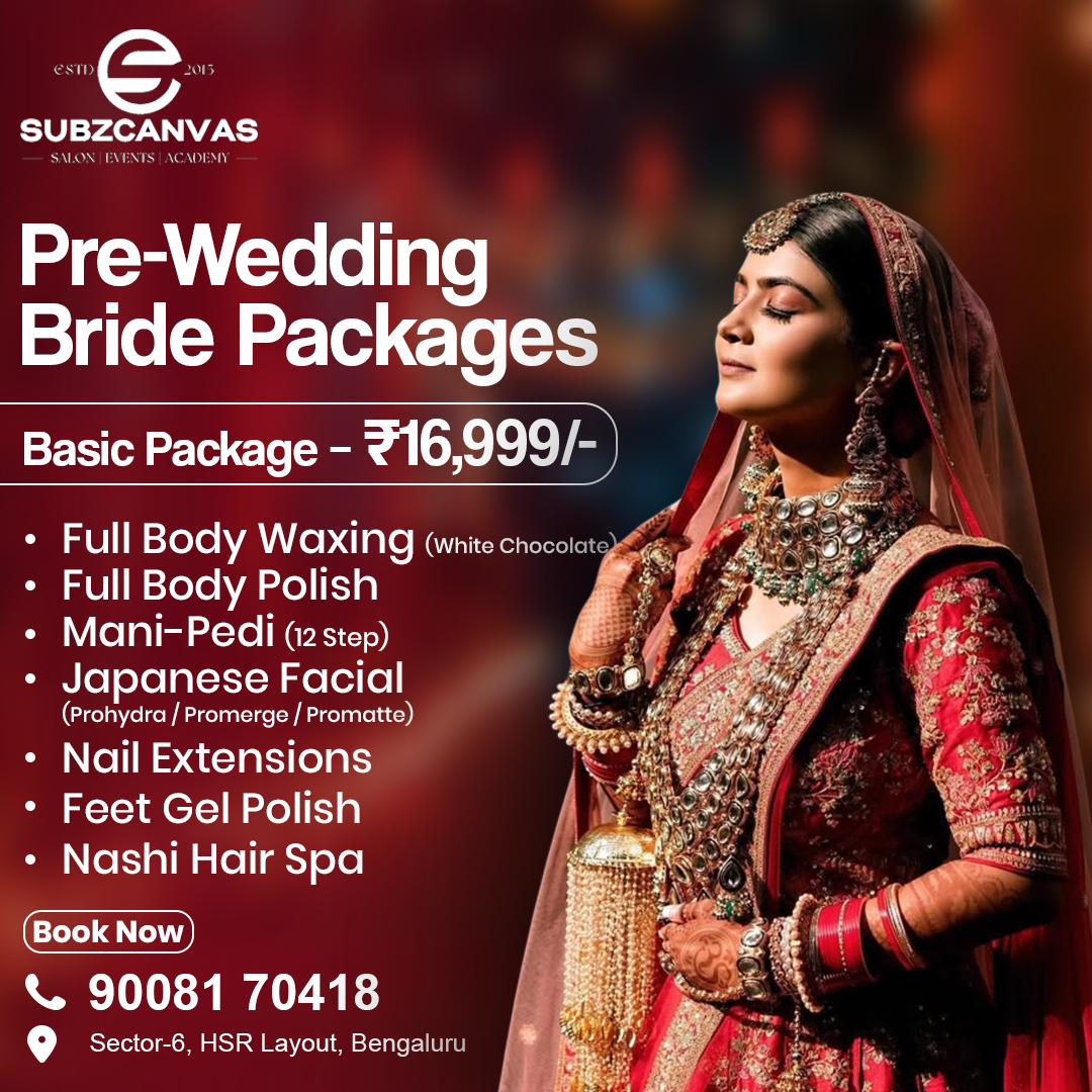 Subzcanvas is a top luxury unisex salon, academy, and wedding photography studio in HSR Layout, Bangalore, founded by celebrity makeup artist Subhagya in 2020. Recognized among the best salons in Bangalore, Subzcanvas offers expert hair styling, bridal makeup, skincare, men’s grooming, and premium wedding photography. With over 12 years of global experience and certifications from the London College of Makeup and Esmod Paris, Subhagya has built Subzcanvas into a women-owned brand known for excellence in beauty, education, and creative direction—making it a one-stop destination for transformation and professional growth.